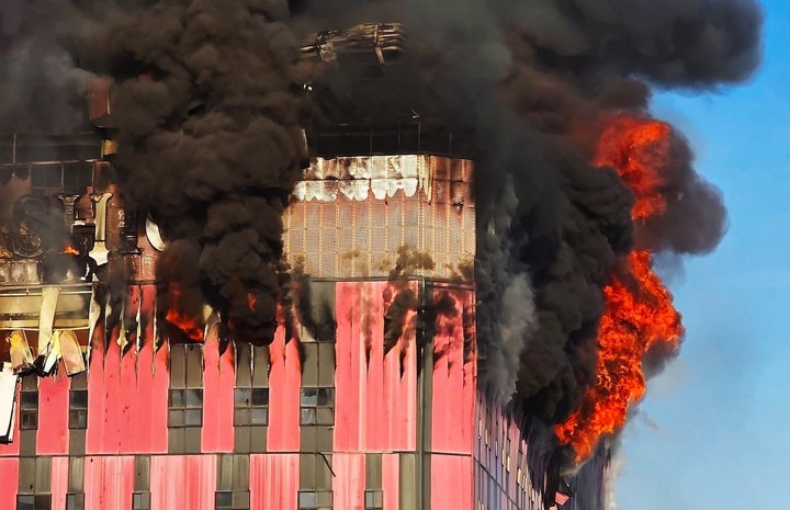 Hình ảnh trên mạng xã hội về vụ cháy. Đám cháy được cho là xảy ra tại tầng 4 của tòa nhà, và đã phá hủy hai tầng, tạo ra một cột khói đen dày đặc bao phủ trên một khu vực rộng lớn.