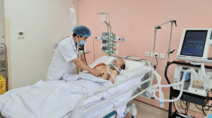 Một bệnh nhân tim mạch được chăm sóc tại Bệnh viện Trung ương Quân đội 108. Ảnh: Bác sĩ cung cấp.